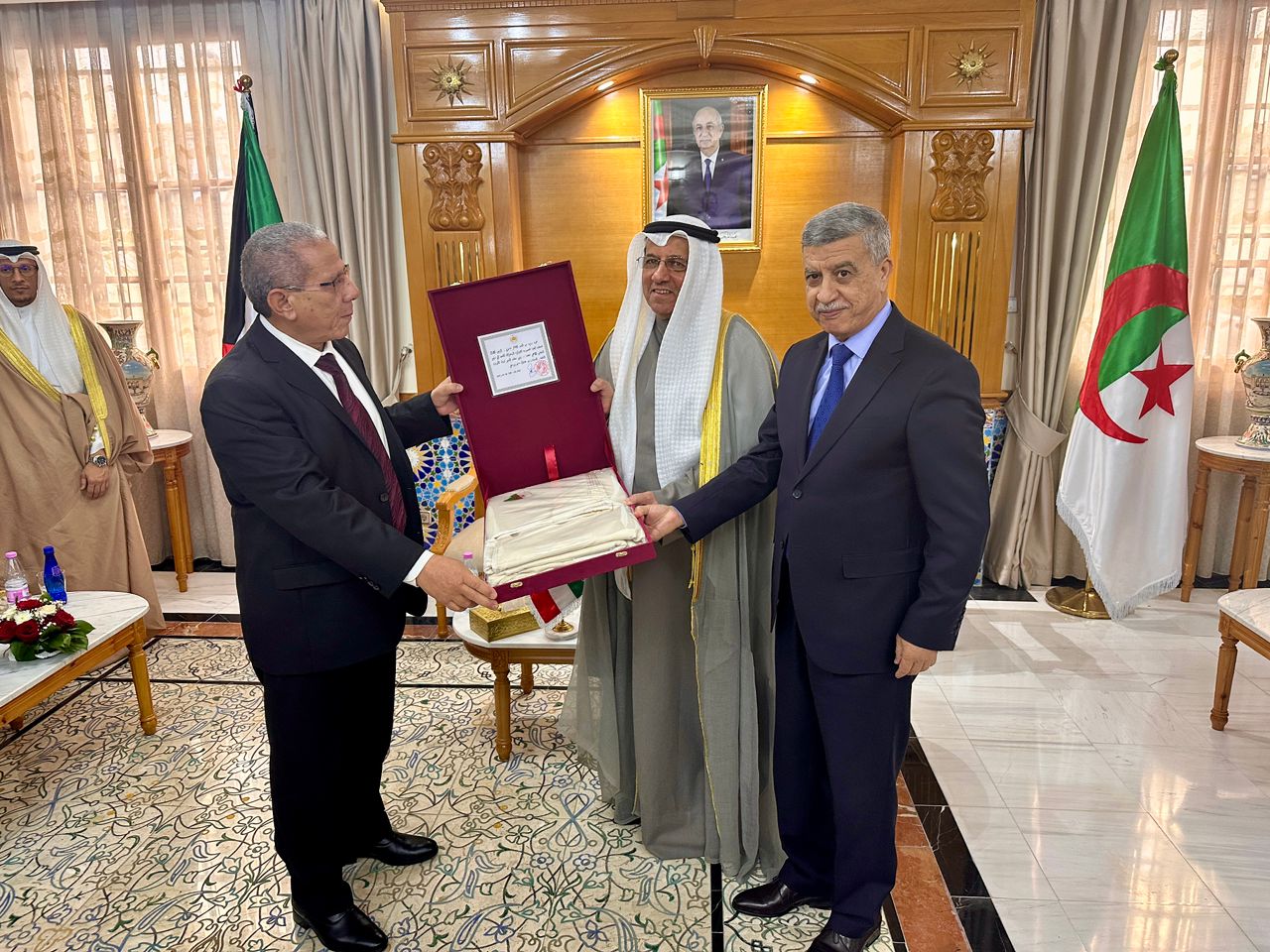 استقبل الرئيس الأول للمحكمة العليــا نائب رئيس المجلس الأعلى للقضاء،السيد الطاهر ماموني، نظيره معالي المستشار الدكتور عادل ماجد بورسلي رئيس المجلس الأعلى للقضاء رئيس محكمة التمييز بدولة الكويت الشقيقة والوفد المرافق له، في إطار زيارة عمل يقوم بها الى المحكمة العليا خلال الفترة الممتدة من 07 إلى 10 ديسمبر 2025 .